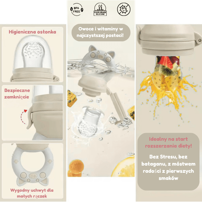 Wystarczy włożyć do środka miękkie owoce, warzywa lub mleko, a Twój maluch samodzielnie odkryje świat jedzenia – bez ryzyka zadławienia.